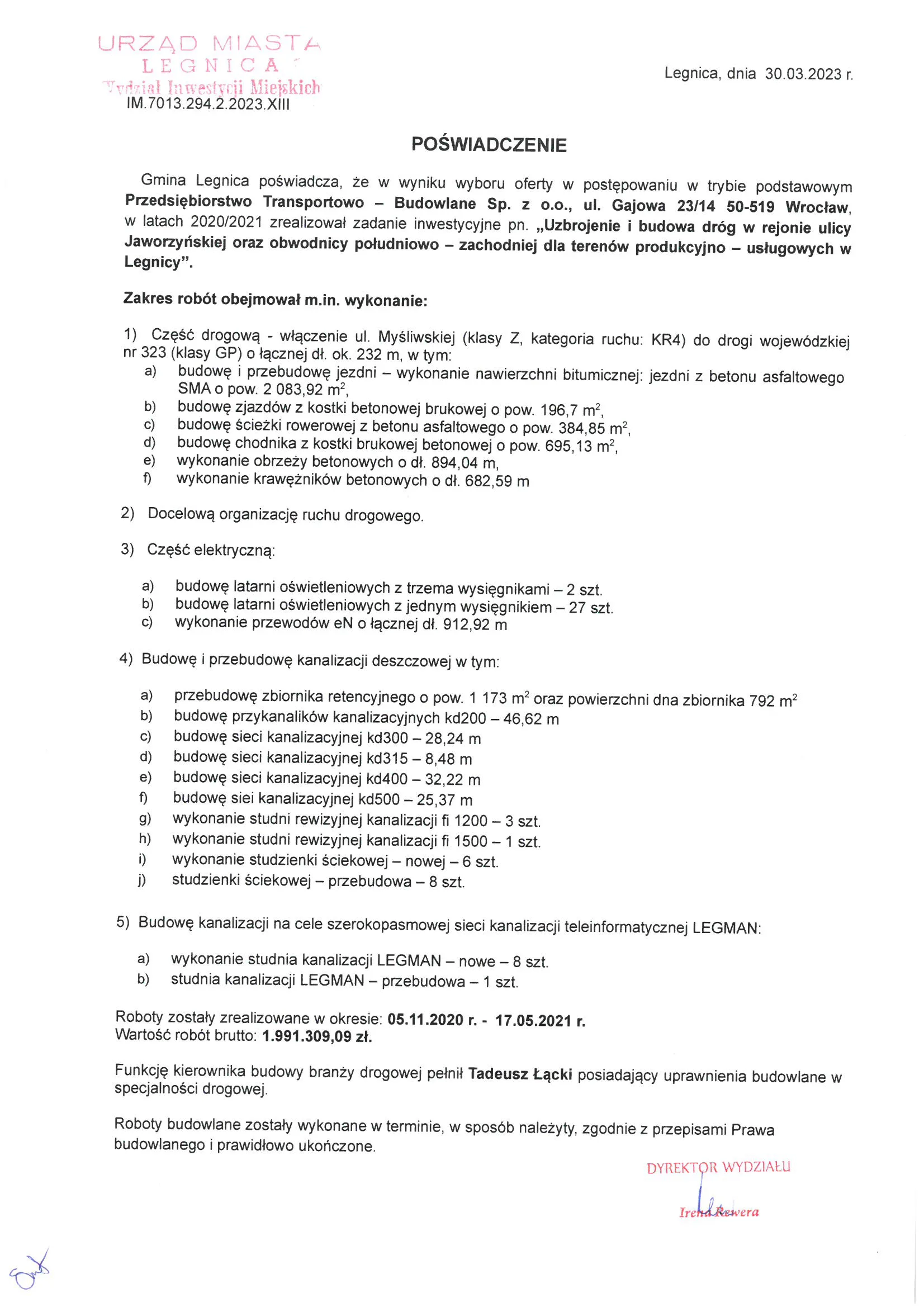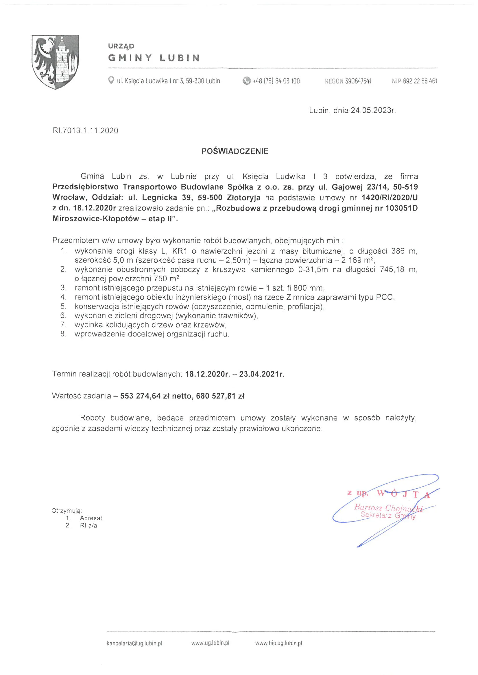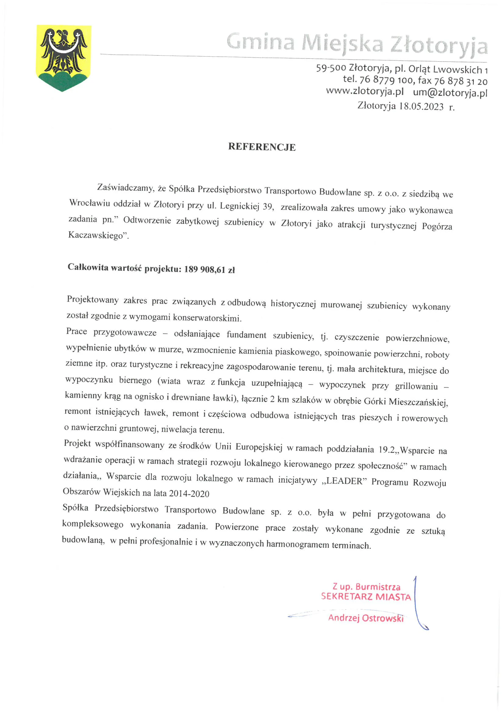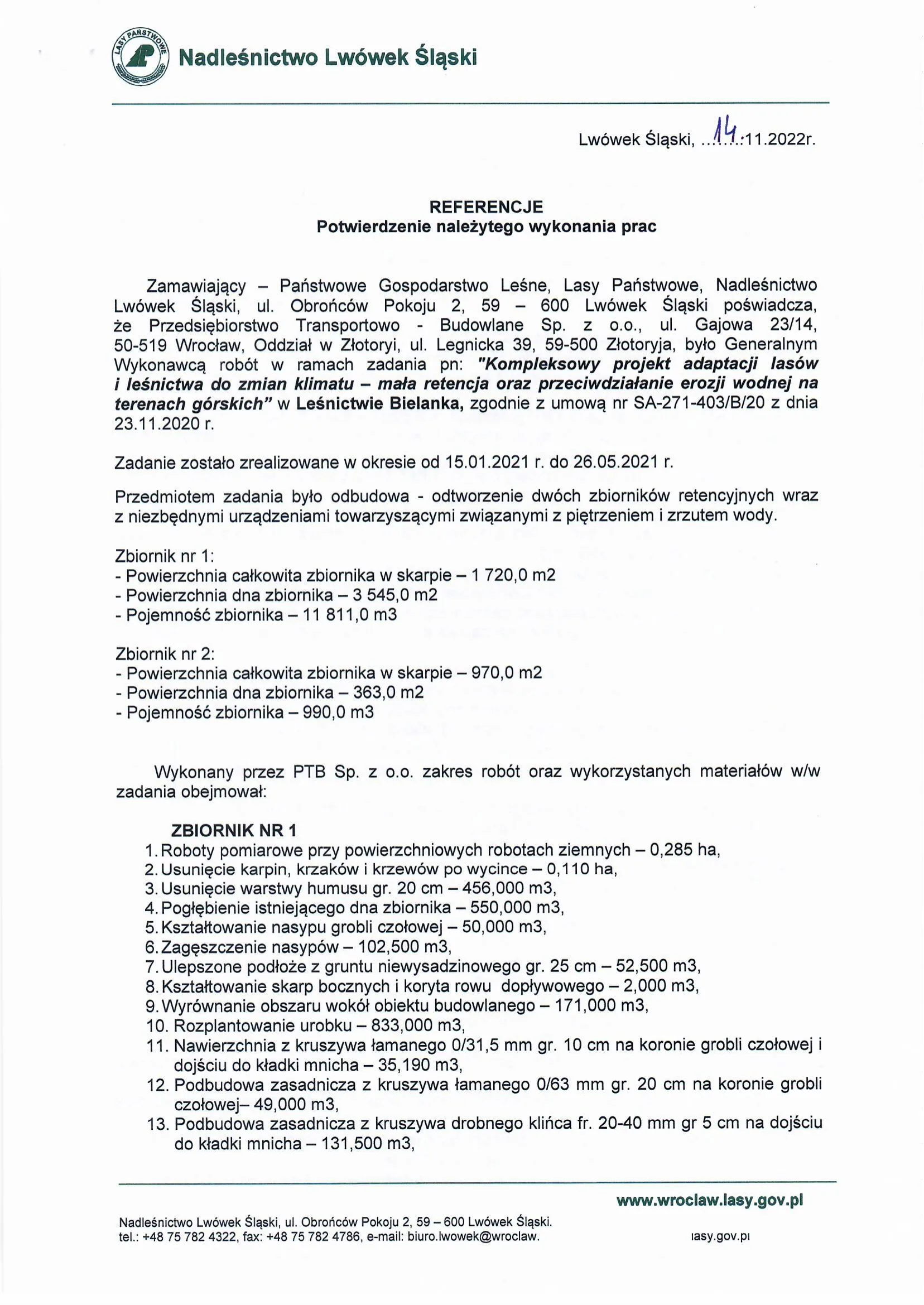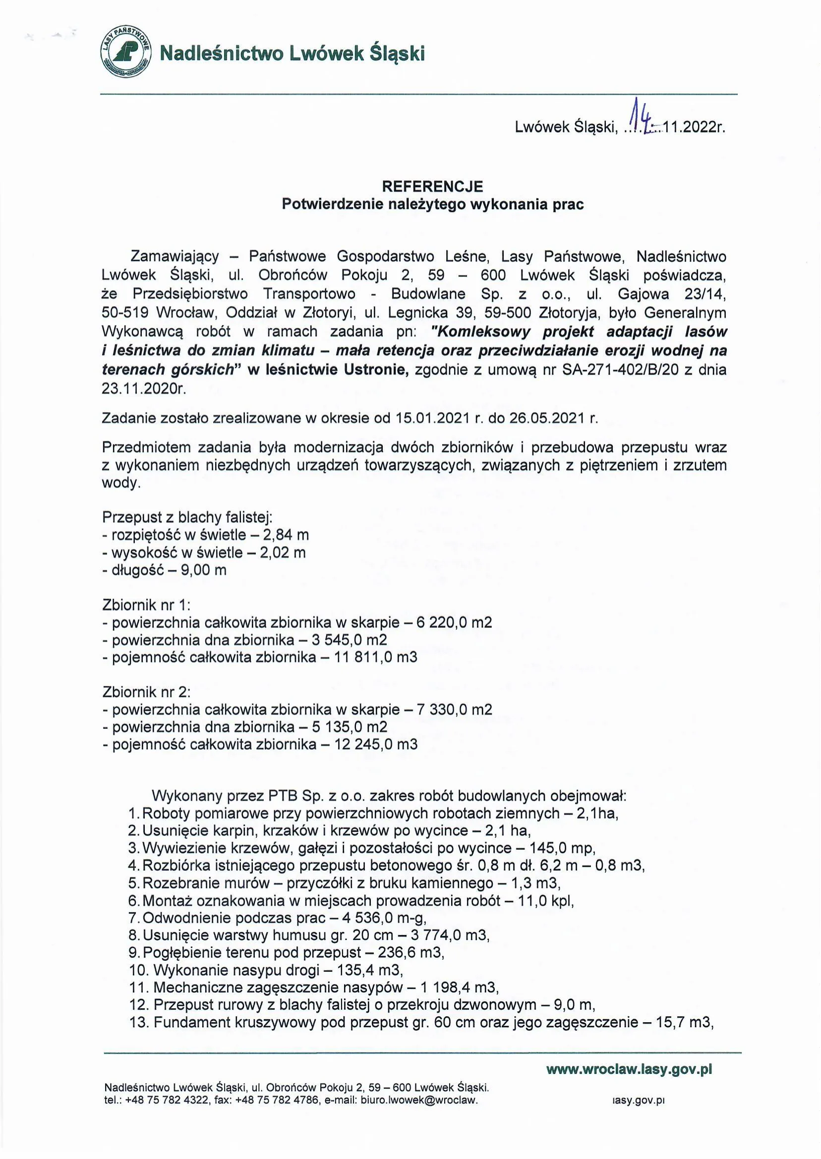 Referencje wystawione przez zamawiających po zakończeniu realizacji robót drogowych, ziemnych i infrastrukturalnych.