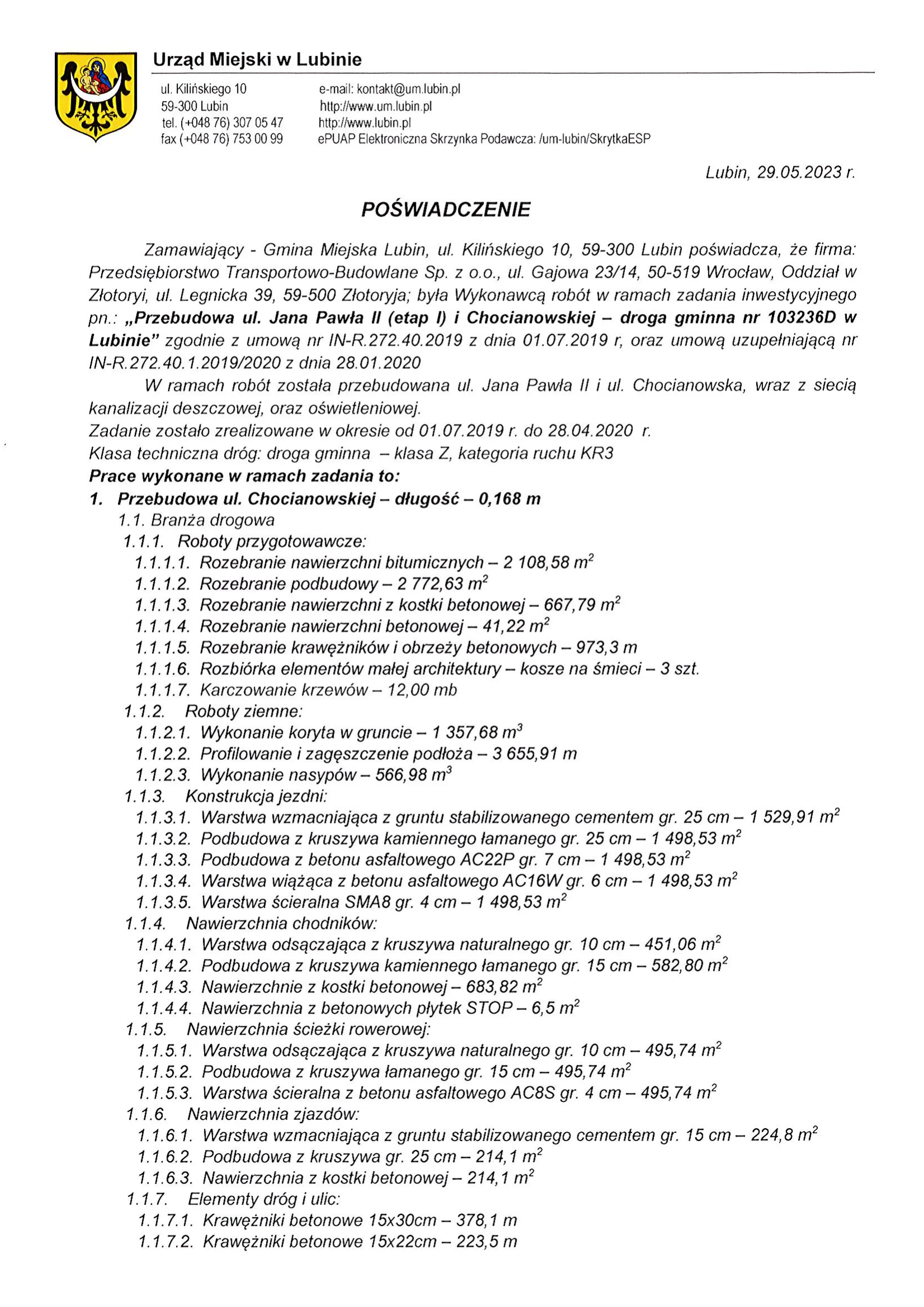 ul. JP II, ul. Chocianowska, Lubin